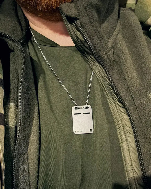 The RBTNK tag — the central artifact of this world, connecting the frontline and the rear