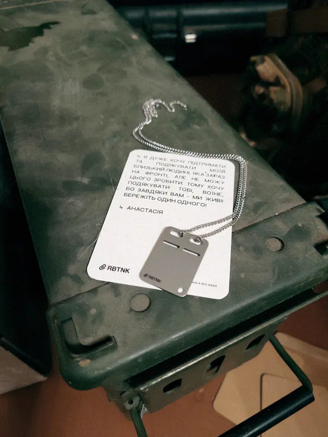 A "suspended" tag of gratitude for those who stand between darkness and light. When you purchase a Suspended Tag, you’re not just buying an artifact, you’re sending a sign of support to a Ukrainian defender. Each tag finds its way to someone on the front lines, reminding them that they are seen, valued, and never alone in this fight.
